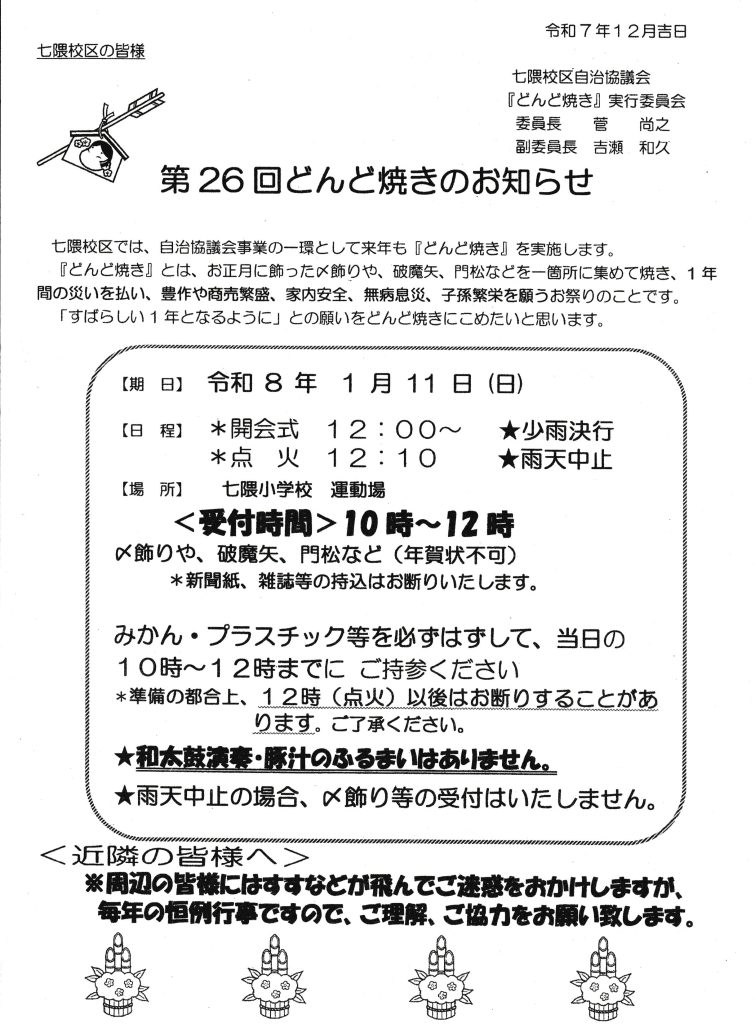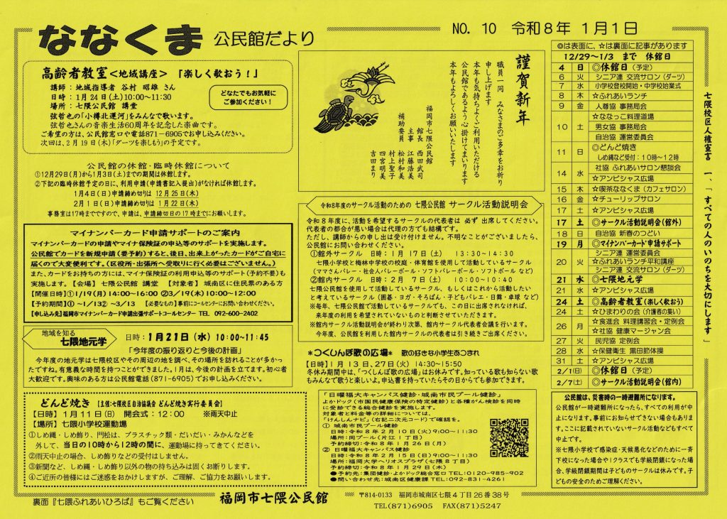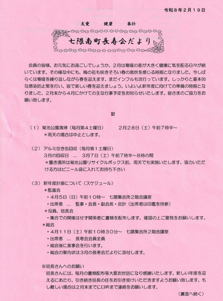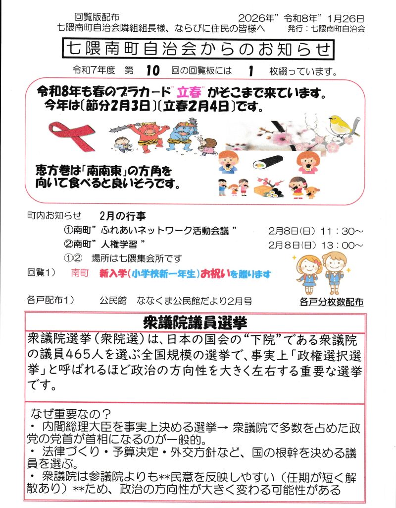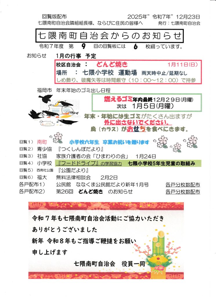 1月の回覧板です。令和8年が素晴らしい年になることを願います。